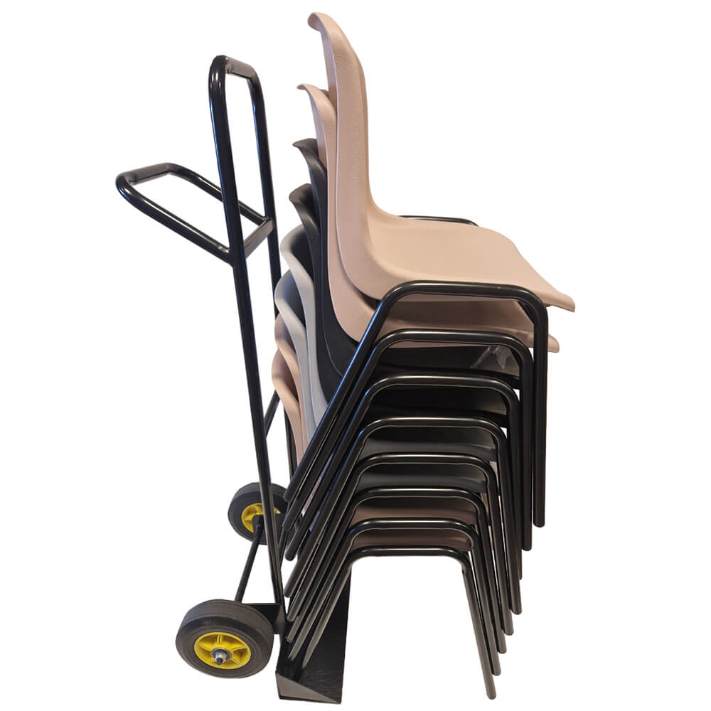 De Kuip Trolley met twee wielen is een professionele transportoplossing voor Kuip stoelen. Met een capaciteit tot 20 stoelen en voorzien van grote rubber wielen (Ø 200 mm) maakt deze zwarte steekkar het verplaatsen van stoelen eenvoudig en veilig. Geschikt voor een maximale belasting van 150 kg.